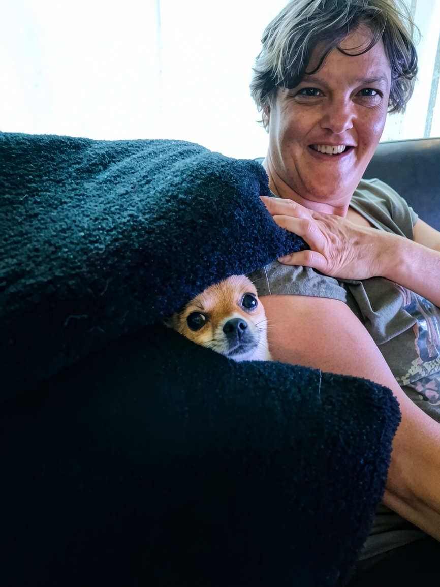 Ik probeer veel te wandelen. Ik heb een hondje, dus dat komt goed uit. Ik heb ook een driewielscooter. Daarmee kan ik gemakkelijk op pad. Ik ga ook vaak met mijn man naar een natuurgebied in de buurt.